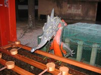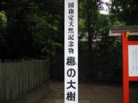 熊野速玉神社のナギは神門の南南東にある推定樹齢800年を誇る古木で、1159年の社殿再建の際に平重盛が寄進植樹したと伝えられ、神木として丁重に扱われている。 |